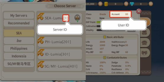 2. Next, provide us your Character ID and Server as shown in the picture below.