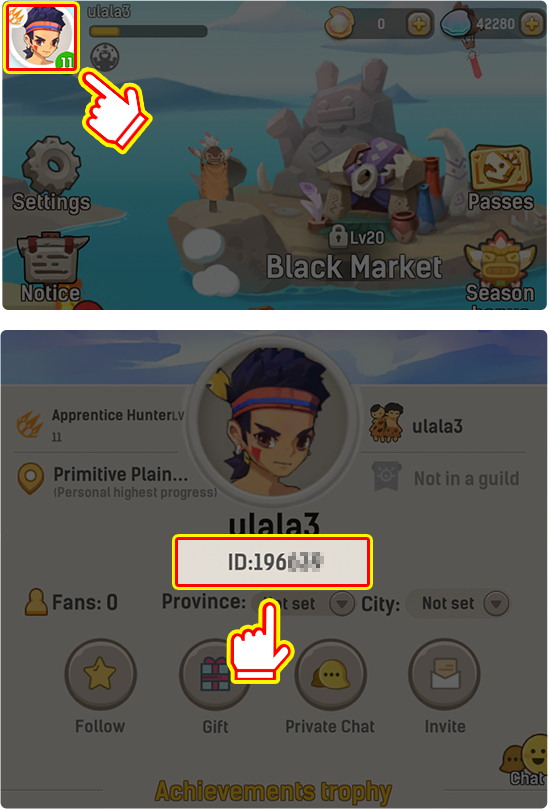 - You can find your user ID at below your IGN (In-Game-Nickname).