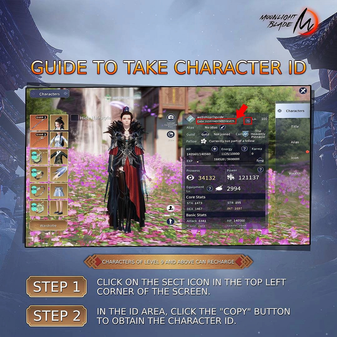 - Finally, this action will display the Moonlight Blade M Character ID on the screen.
