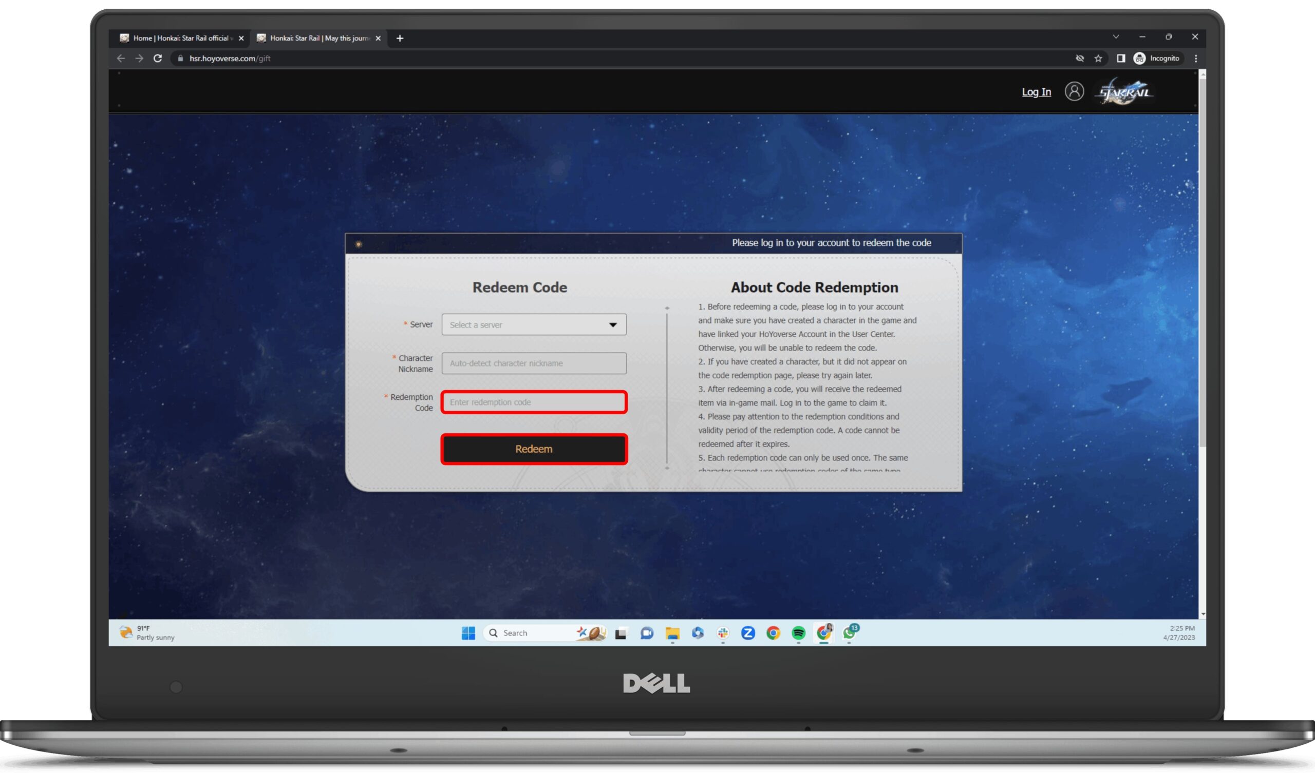 4. Enter your Redemption Code and click on the “Redeem” button.