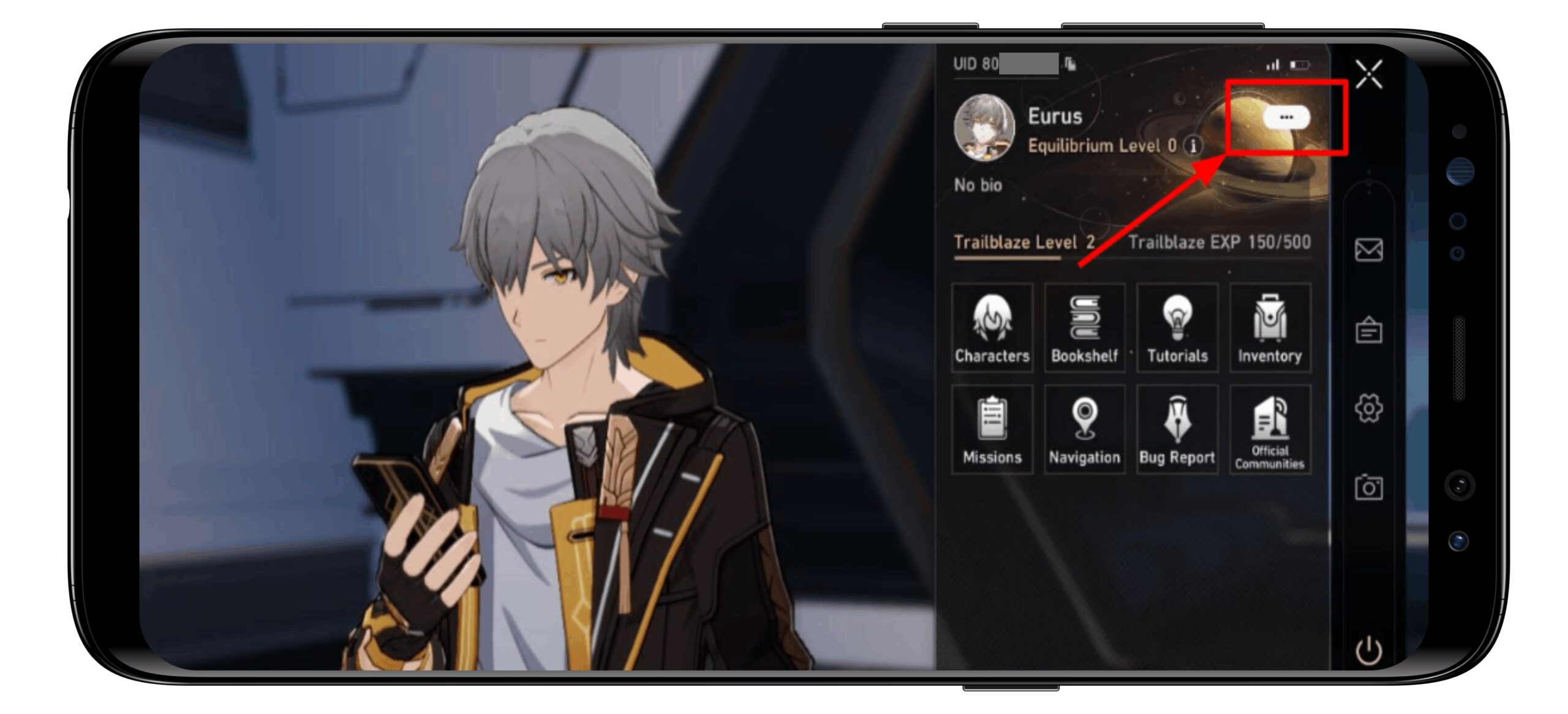 1. log in to Honkai: Star Rail and click on the Phone menu in the top left corner;